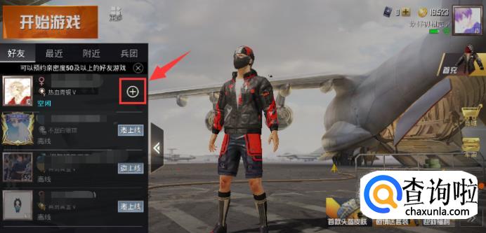 点进去之后我们就可以看到一共有四栏可邀请列表,其中第一个就是好友列表,玩家点击好友后边的“+”号即可邀请好友一起作战。