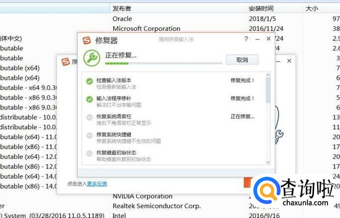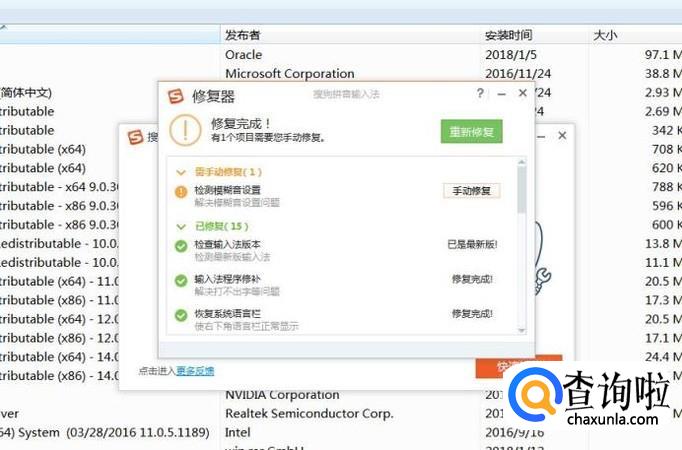 按照页面提示信息,点击修复按钮,然后程序将自动修复输入法程序设置。