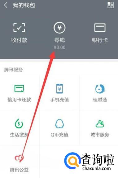 进入之后,选择“零钱”,点击并进入,如图所示。