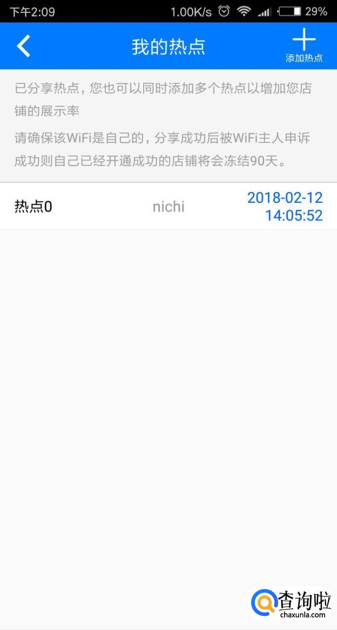 4、以主人身份提交成功一个WiFi后需要在当天24点之前申请开通店铺成功,否则以主人身份提交成功的WiFi将会转变为以客人身份提交成功的WiFi,不过不会影响自己再继续以主人身份提交;店铺开通成功后才可以继续以主人身份提交多个WiFi。