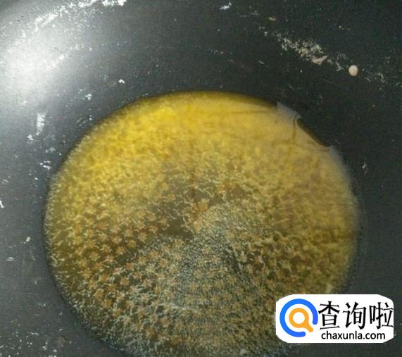 起锅烧油,将适量的黄油加入到锅里面,将其热化,如图所示。