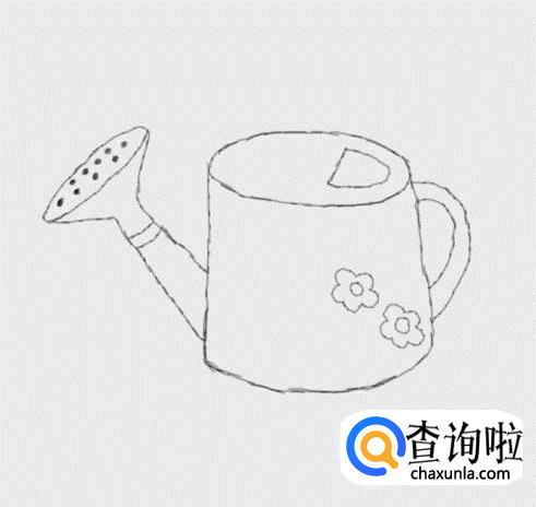 最后在喷水嘴上画出喷水孔,然后在画出装饰的弧线,这样我们的家居用品水喷壶就画好了,如图所示: