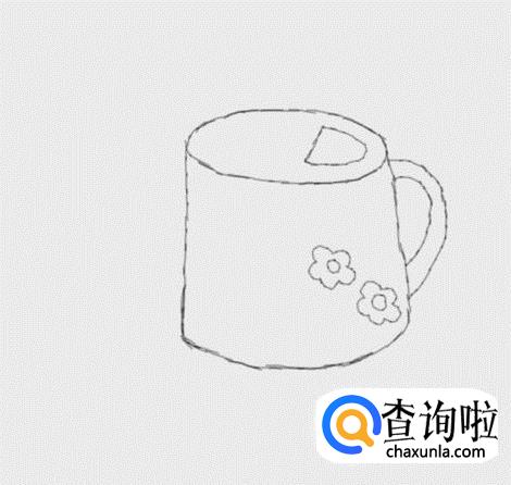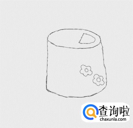 再在圆柱的上面画出水喷壶的口,然后再在壶体上画出两朵梅花作为装饰,如图所示: