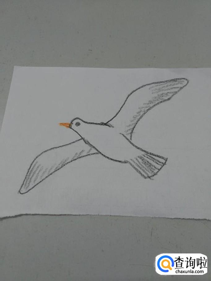 在翅膀和尾巴上面,分别画一些短线,表示羽毛。