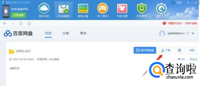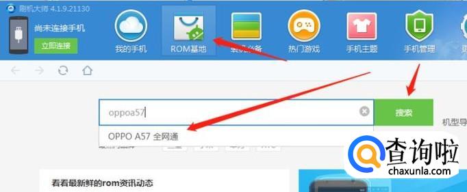 然后我们点击刷机大师顶部导航的rom基地,在搜索框输入“oppoa57”然后点击搜索