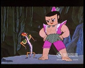 绿色的是四娃,本领是喷火,火焰收放自如。被妖精灌醉冻在冰里。