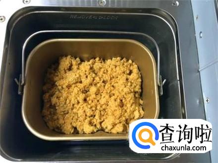 猪肉放进面包机里,开启肉松模式很快就做好了,倒出来半小时后装进袋子里就可以吃了。
