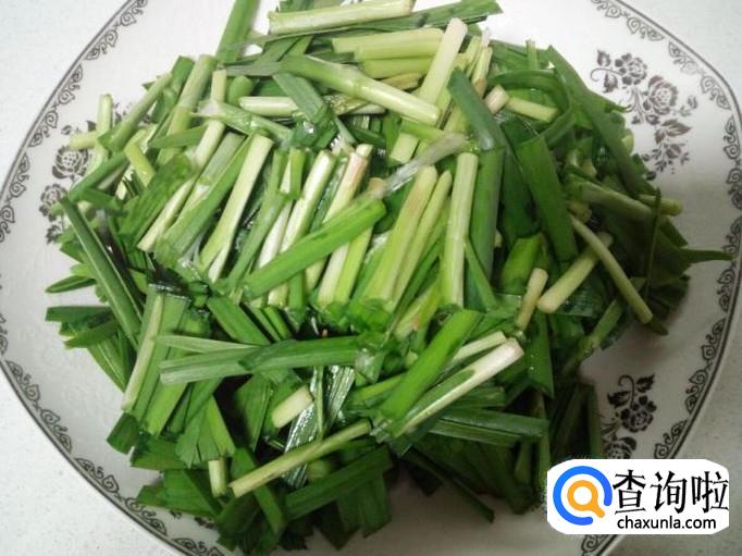 韭菜收拾清洗干净,控干水分,切成寸段。