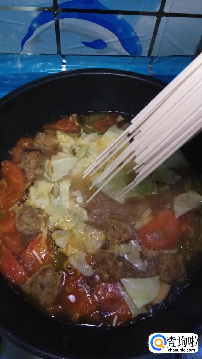 香菇适量,西红柿适量,牛肉丸子适量,蒜适量,青椒适量,包菜适量,盐适量,五香粉适量,鸡精适量。