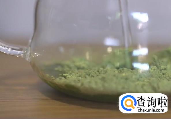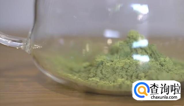 首先,准备一个玻璃杯,将大麦若叶粉末倒入杯子中。