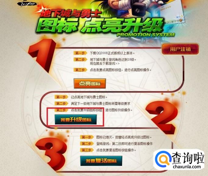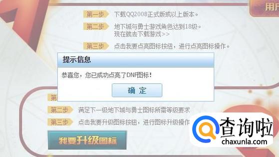 在地下城与勇士的图标管理界面,点击“我要升级图标”按钮。