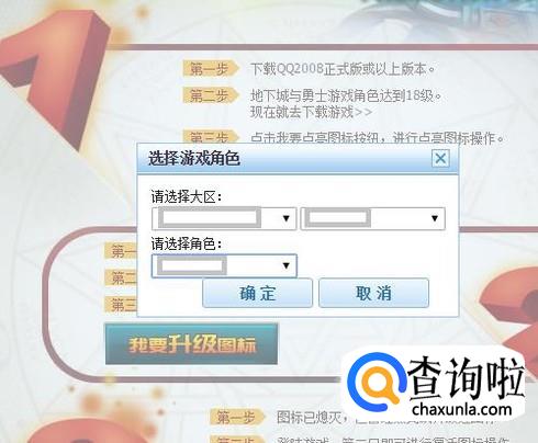 选择账号下的游戏大区及角色名称,点击确定,即可成功点亮地下城与勇士的图标。