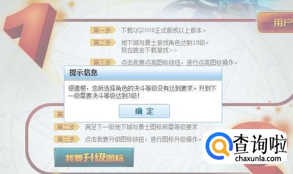当所绑定的大区角色满足决斗等级的要求,即可成功升级图标等级。