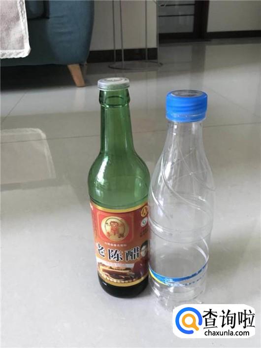 拿出日常使用的醋和一个空的带盖的矿泉水瓶子,见下图