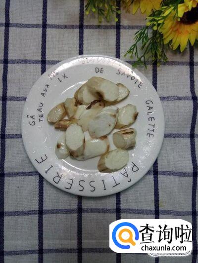准备适量山药,去皮后切成小段,放在盘中备用。