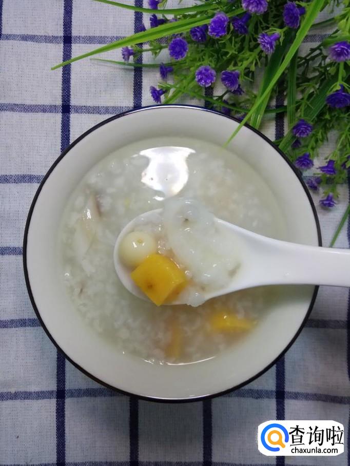 盛在碗里,就可以吃了,美味的红薯山药莲子粥就做好了,特别好吃。