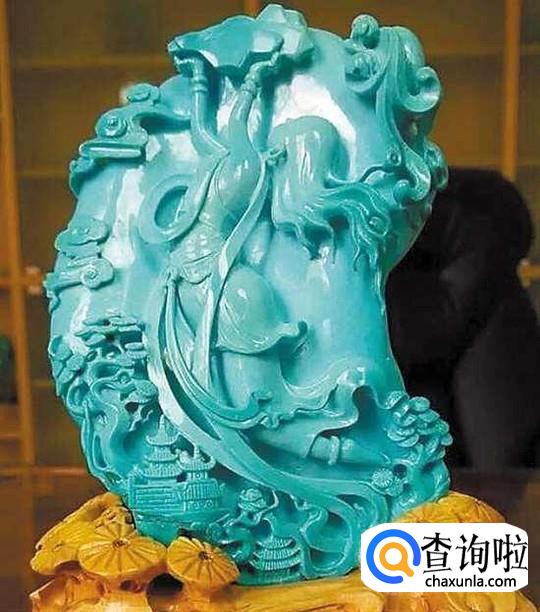 买绿松石除了看出产地出价外,还有靠雕刻工艺出价的,一般工艺比较复杂的绿松石,一克要2500-3500之间。