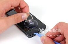 用吸盘吸起后盖。要用力,否则手机后盖吸不起来。