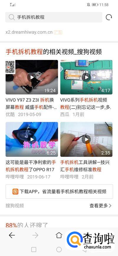 在浏览器里搜索拆机教程。有的手机比较特殊,用以上方法打不开的话就在浏览器里搜索一些拆机教程,根据教程里的步骤进行拆卸。