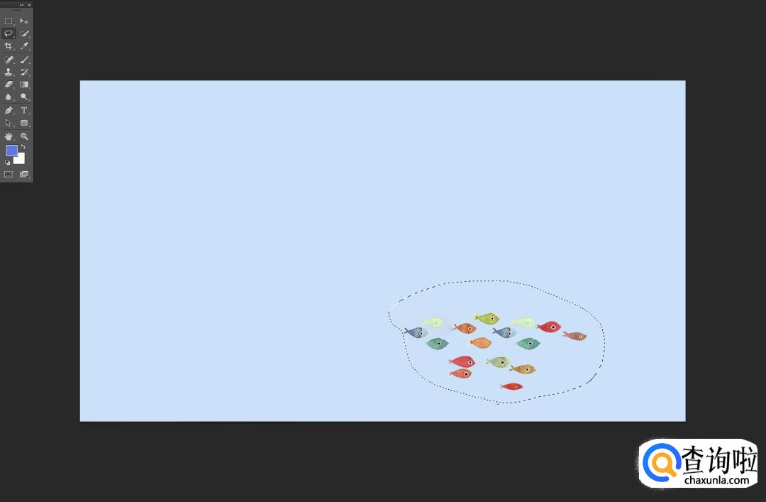打开PS,把图片拖入PS中。比如自己想要纯的背景,不要下方的鱼。