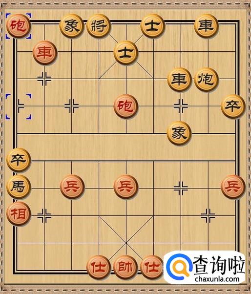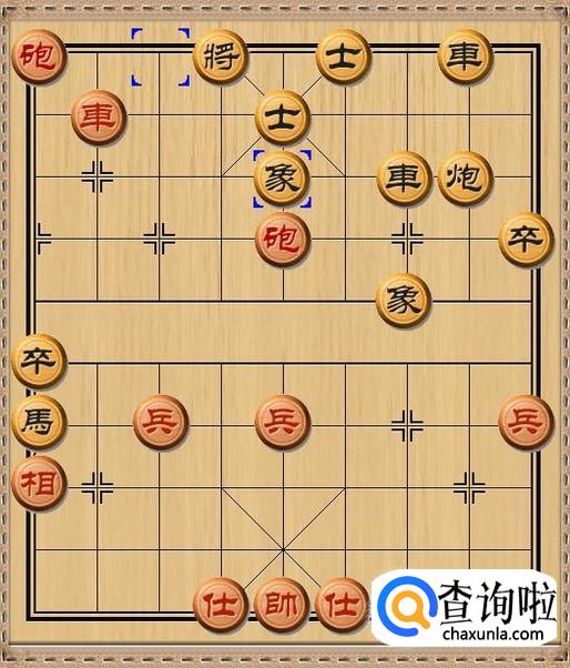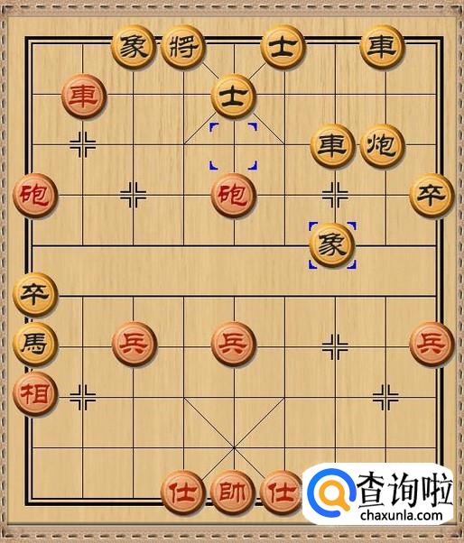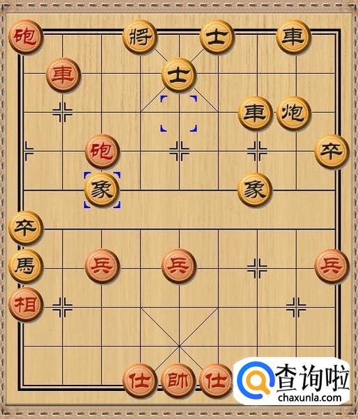 黑方老将也意识到被红方打了个时间差,黑方象5进3,黑方象飞出,为黑方车阻击红方炮提供机会。如图所示。