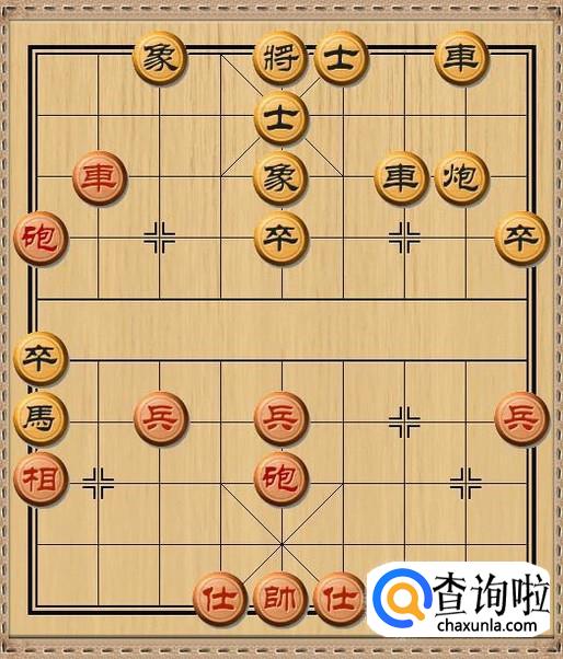 黑方老将又发现,红炮下底将军又会是绝杀。因为黑方底线上的象飞不开。而红方车在黑方二路,自己又不能往上走。于是,黑方象5进7,黑方中象飞开,为黑方底线的象飞出腾位置。如图所示。