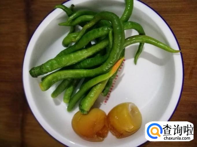 准备几个青辣椒和两枚皮蛋。