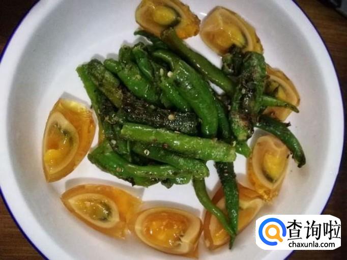 辣椒去蒂,清水洗净。皮蛋去壳,清水洗净。