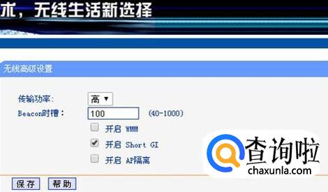 然后在第四步的图中左边 选择“无线高级设置”,然后在右边的参数设置就按图中选择。这里尤其要知道的是,在出现本文的问题时,“开启WMM”这一项就要关闭,因为这一项开启的话,不支持WMM协议的硬件设备就不能连接到此路由器。点击保存后,问题就会解决了。