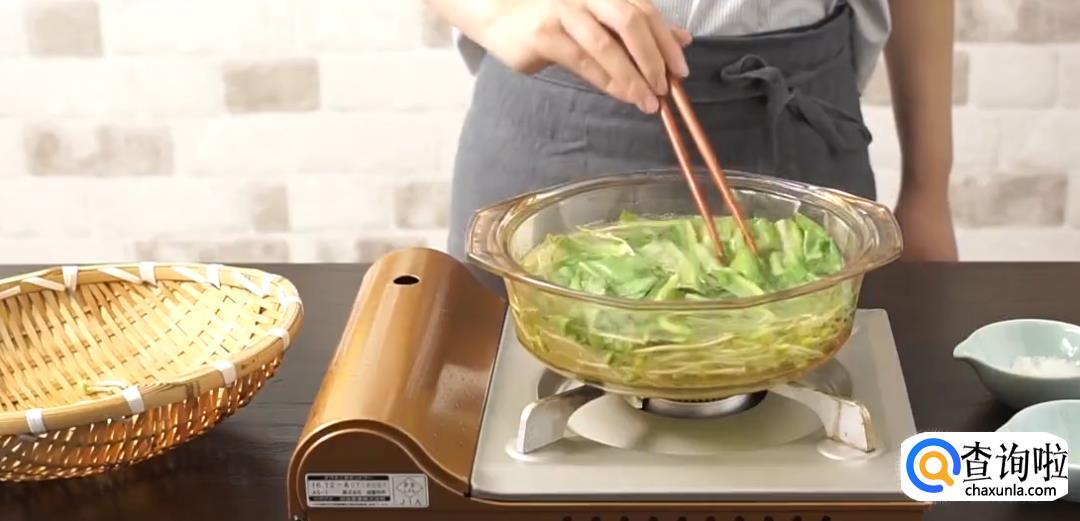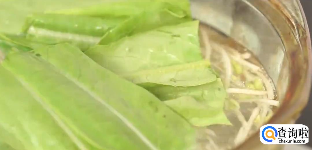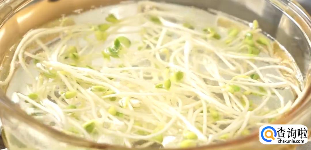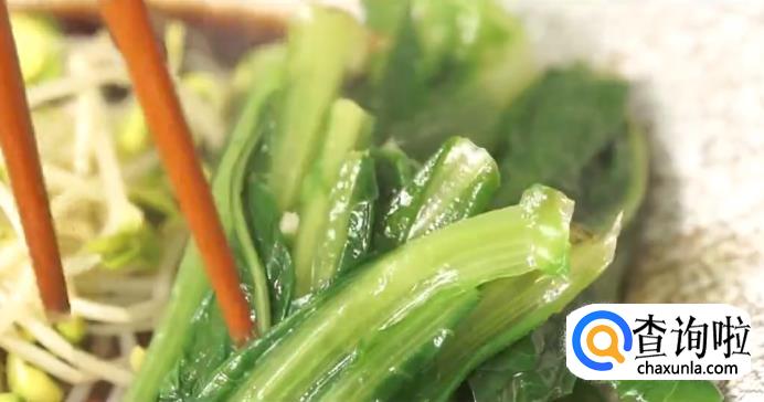 将焯水的豆芽和油麦菜捞出铺底,然后下面条煮熟,捞出后摆在青菜上。