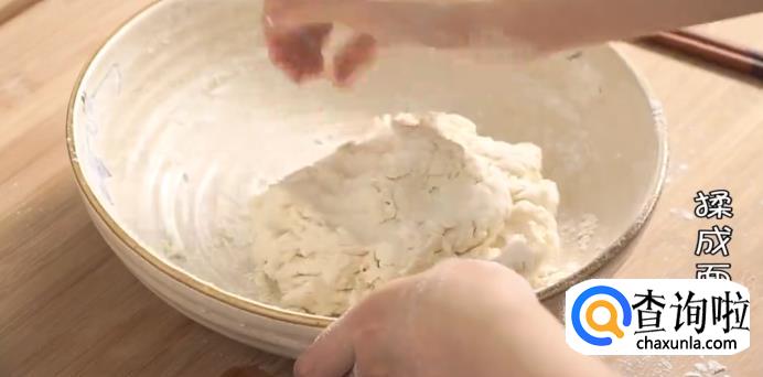 面粉中加盐,然后用温水和面,和成雪片状后用手揉成面团。