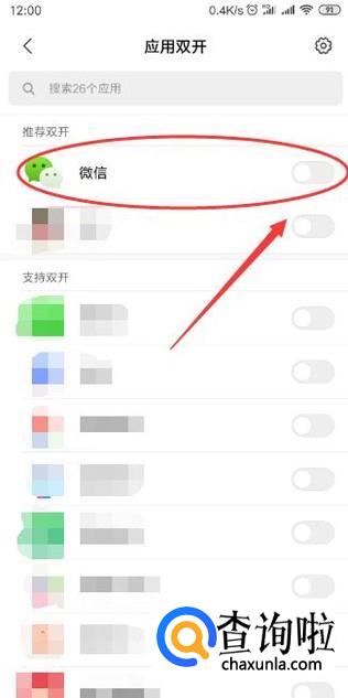 如下图所示,我们打开微信的双开功能即可。