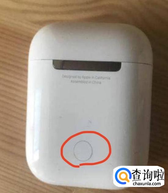 打开充电盒盖子,长按充电盒后面的小按钮。