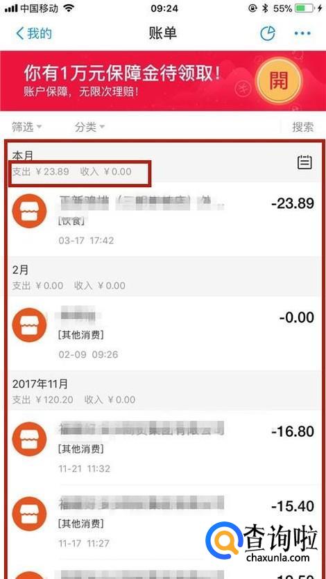 这样我们就可以查询到我们的支付宝账单了,我们只要把这张图片截图,发送到电脑,把它打印出来就可以了。