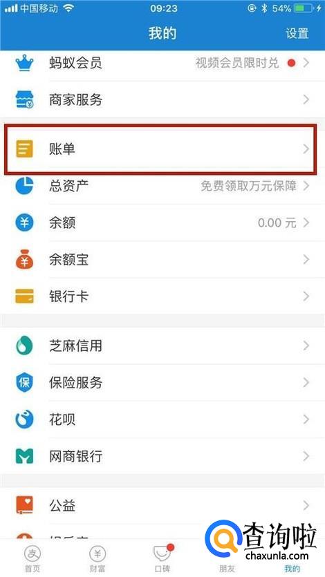 接着点击账单,如下图所示。