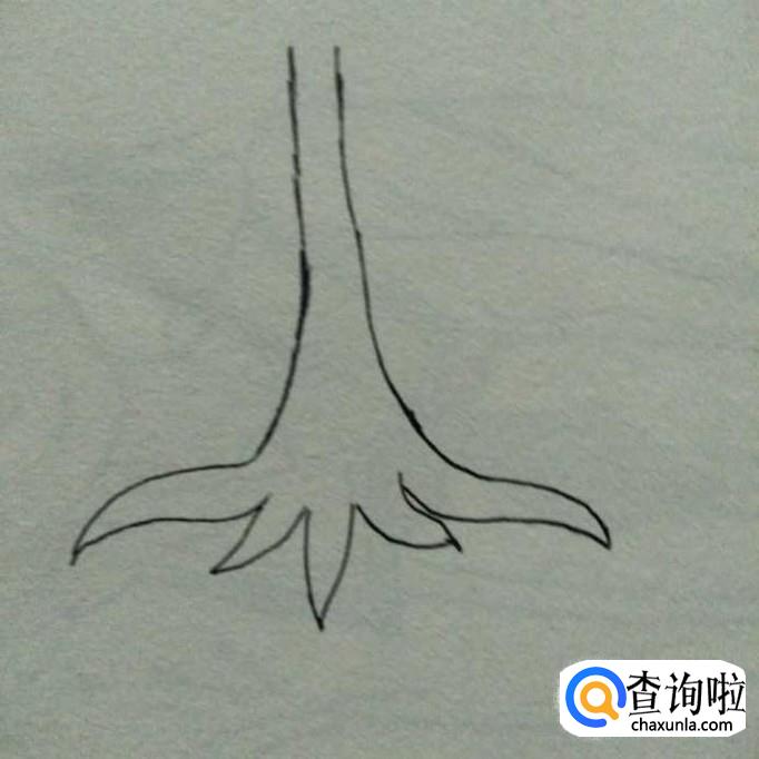 然后再画一小节树干,并在树干的上方画出两根比刚刚的树枝更加的长的树枝。