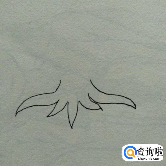 然后,在纸条的上部,左右分别画出一根较细的枝条,如下图所示。