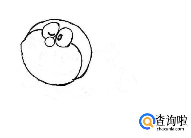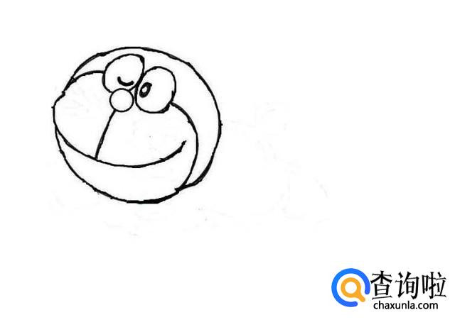 之后画出多啦A梦的脸部轮廓,如图所示。