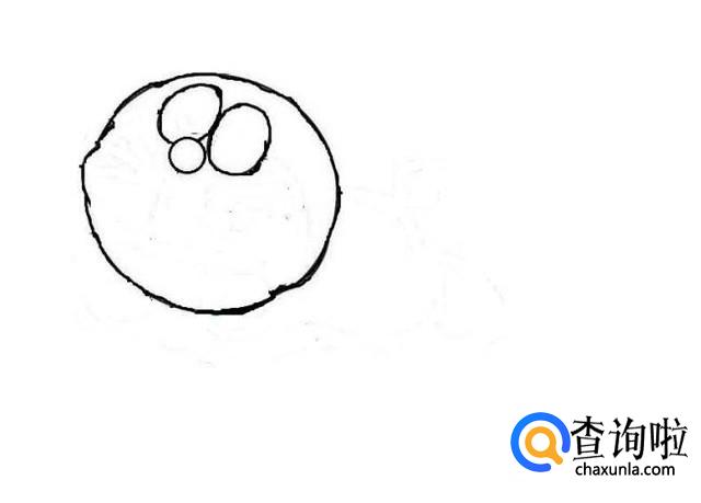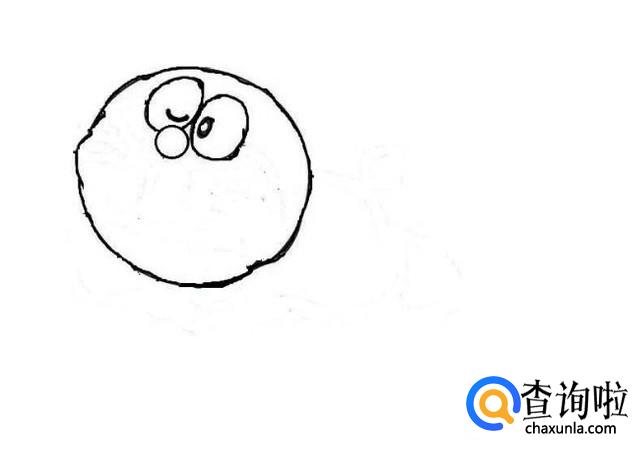 之后我们画出多啦A梦的眼珠子,我们一定要仔细的去画,因为将眼睛的神态画好了,整幅画就会非常的棒,如图所示。