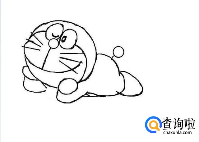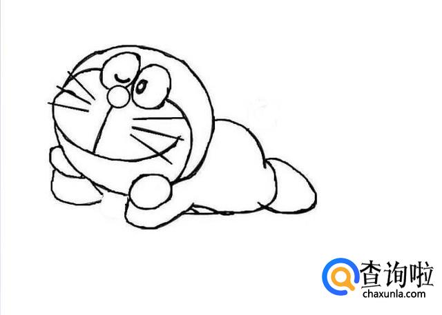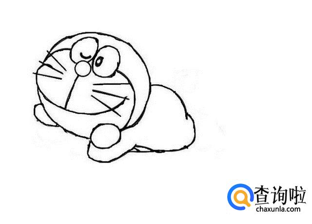 之后我们画出多啦A梦的身体,是拍在地上的样子,如图所示。