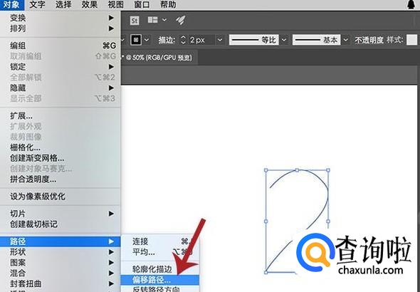 接着点选描边路径形状,在上方菜单中选择“对象-路径-偏移路径”