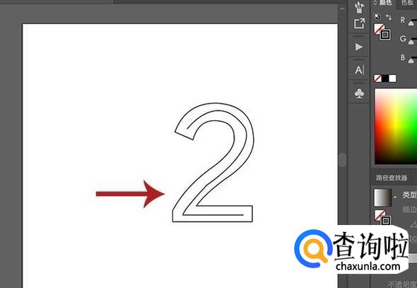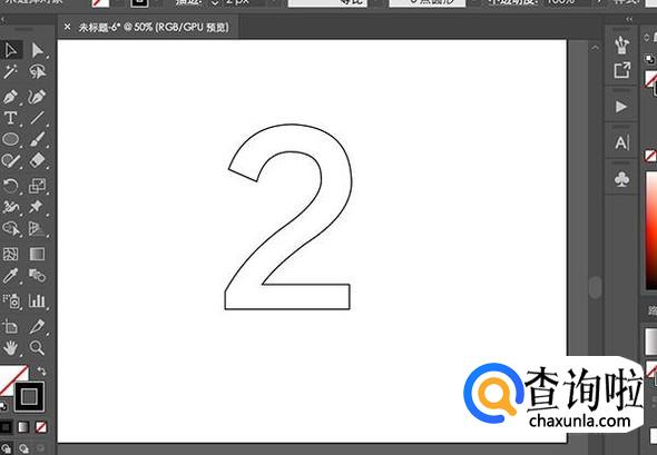 打开电脑中的AI软件,利用文字工具在画板上添加一个数字,然后将数字的填充给关闭掉,添加一个描边。