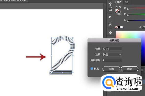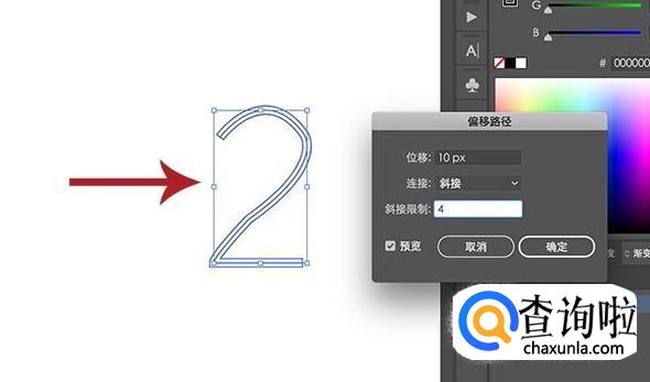 在偏移路径设置面板,根据预览效果对数值进行调整。