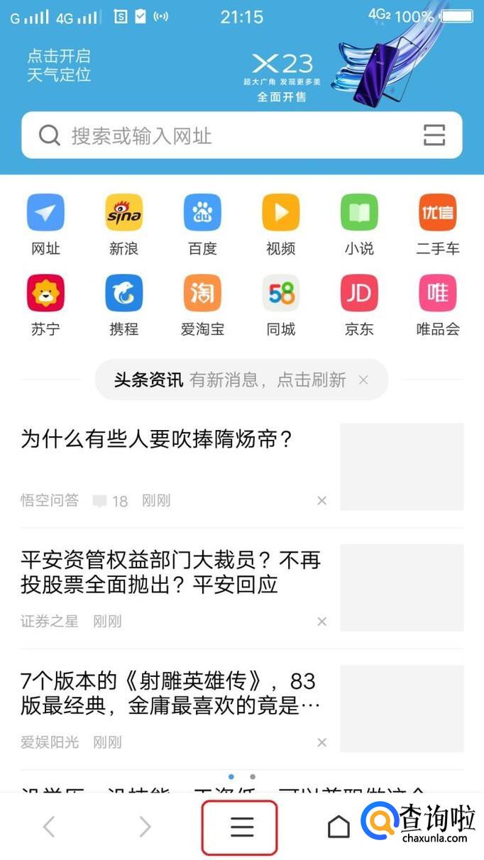 首先,我们打开手机自带浏览器,如图所示,点击屏幕下方的图标。
