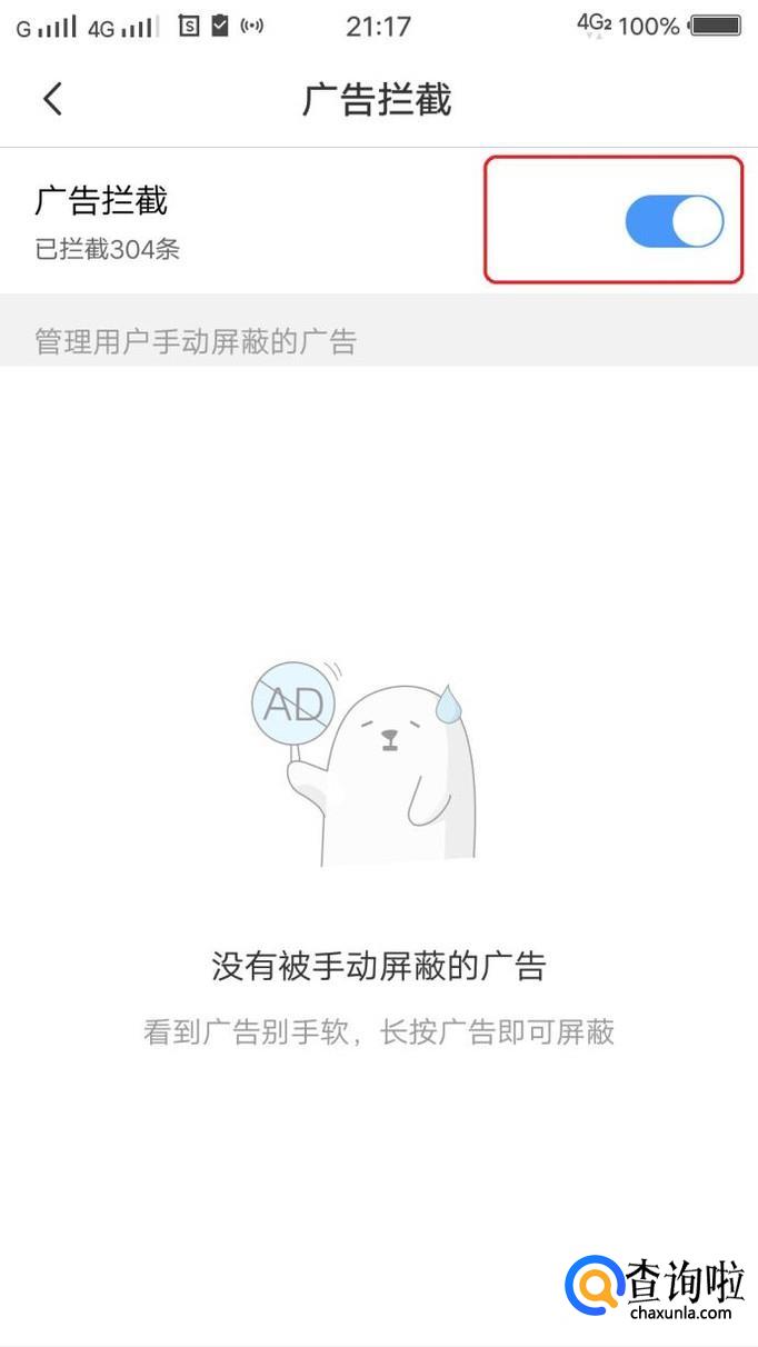 点击打开“广告拦截”,关闭页面就可以了,再次重启浏览器,浏览网页就不会经常弹出广告了。