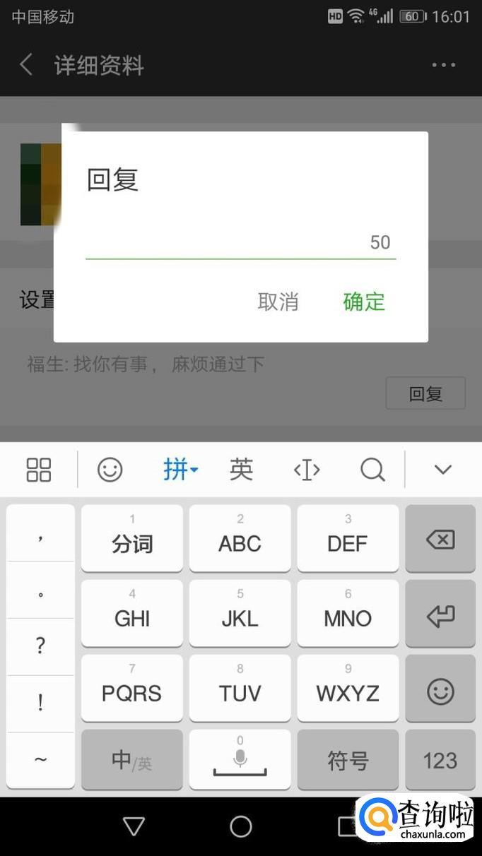 也可以点击“回复”来聊天,询问好友。确认是否需要添加。