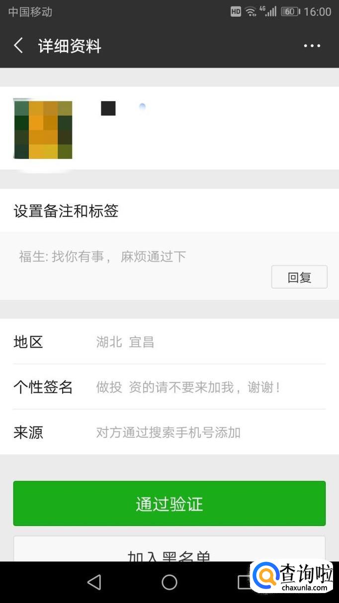 进入好友验证后,里面可以看到好友加你微信的来源方式。