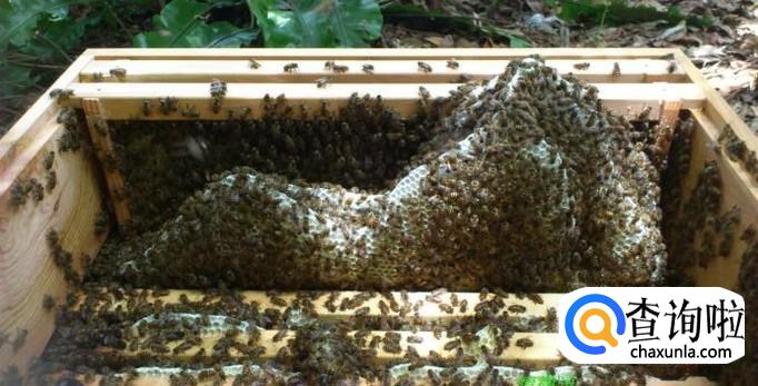 然后把摘下来的蜜蜂巢放入到自制的蜜蜂箱中,这样子蜜蜂就会留在蜜蜂箱中。