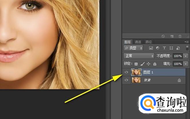 鼠标移到图层面板这里,按下CTRL+J快捷键,把背景层复制一层为图层1