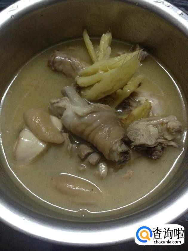 米酒鸡汤,鸡肉斩成块,焯水后备用,姜片洗净切成末,倒入没有油的锅中炒至金黄色,再倒入鸡肉一起翻炒,最后倒入糯米酒,加入适量水,水开之后转小火煮30分钟,关火前加少许糖调味。